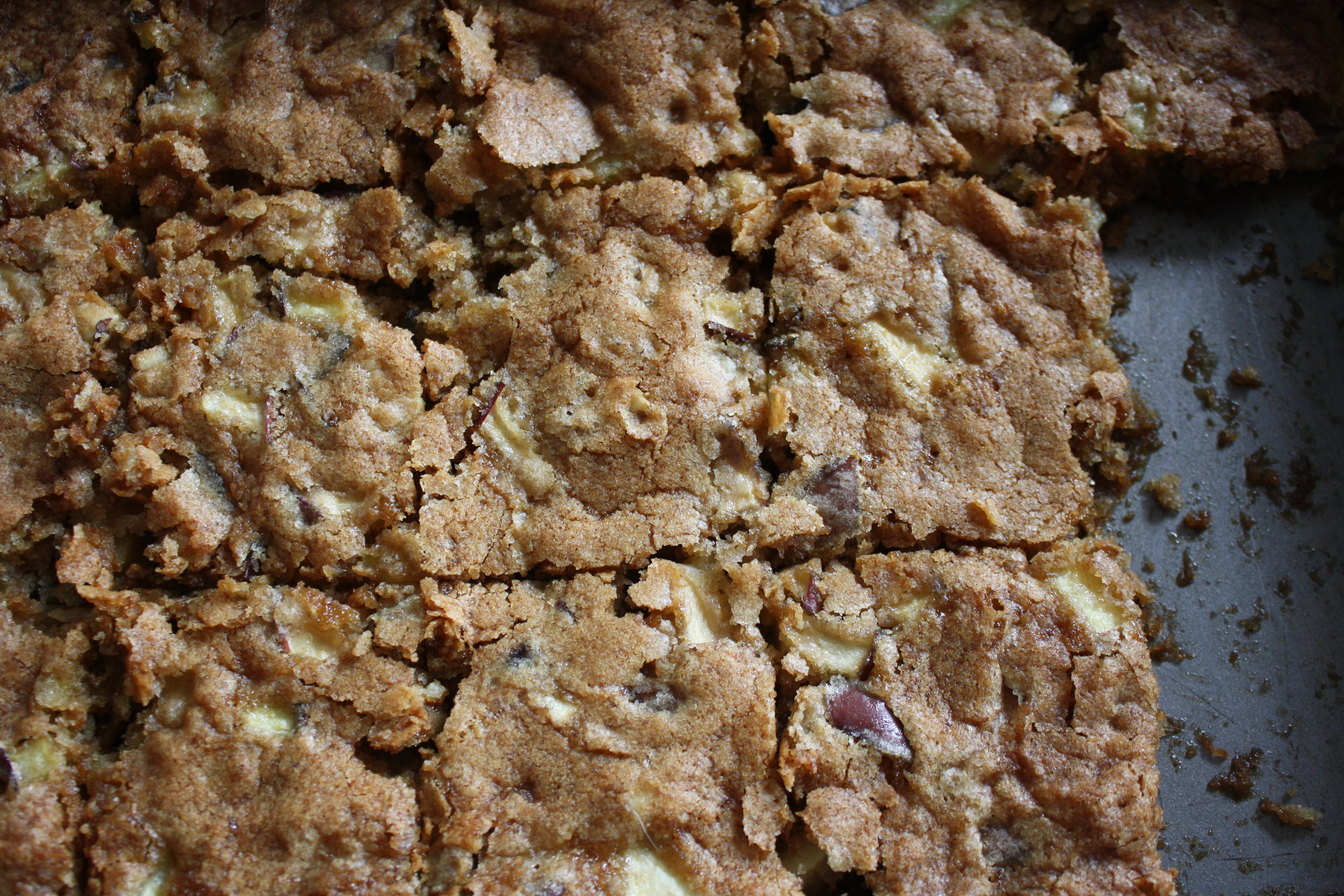 Spread the batter into the pan and bake for 30-40 minutes or until golden brown and slightly firm. Cool on a wire rack for 30 minutes then slice into bars.