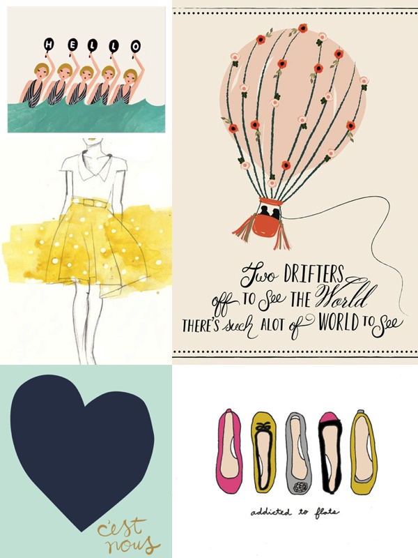 I don’t really have a theme when I’m looking for great art… really my only stipulation is that it makes me smile when I see it. Now don’t get me wrong, I’m not really to the point of scouring art galleries and spending hundreds of dollars on artwork (ha! Long way off). My favorite places to find great art are Etsy and Art.com. There are so many great illustrations and prints that you can find for a great price!