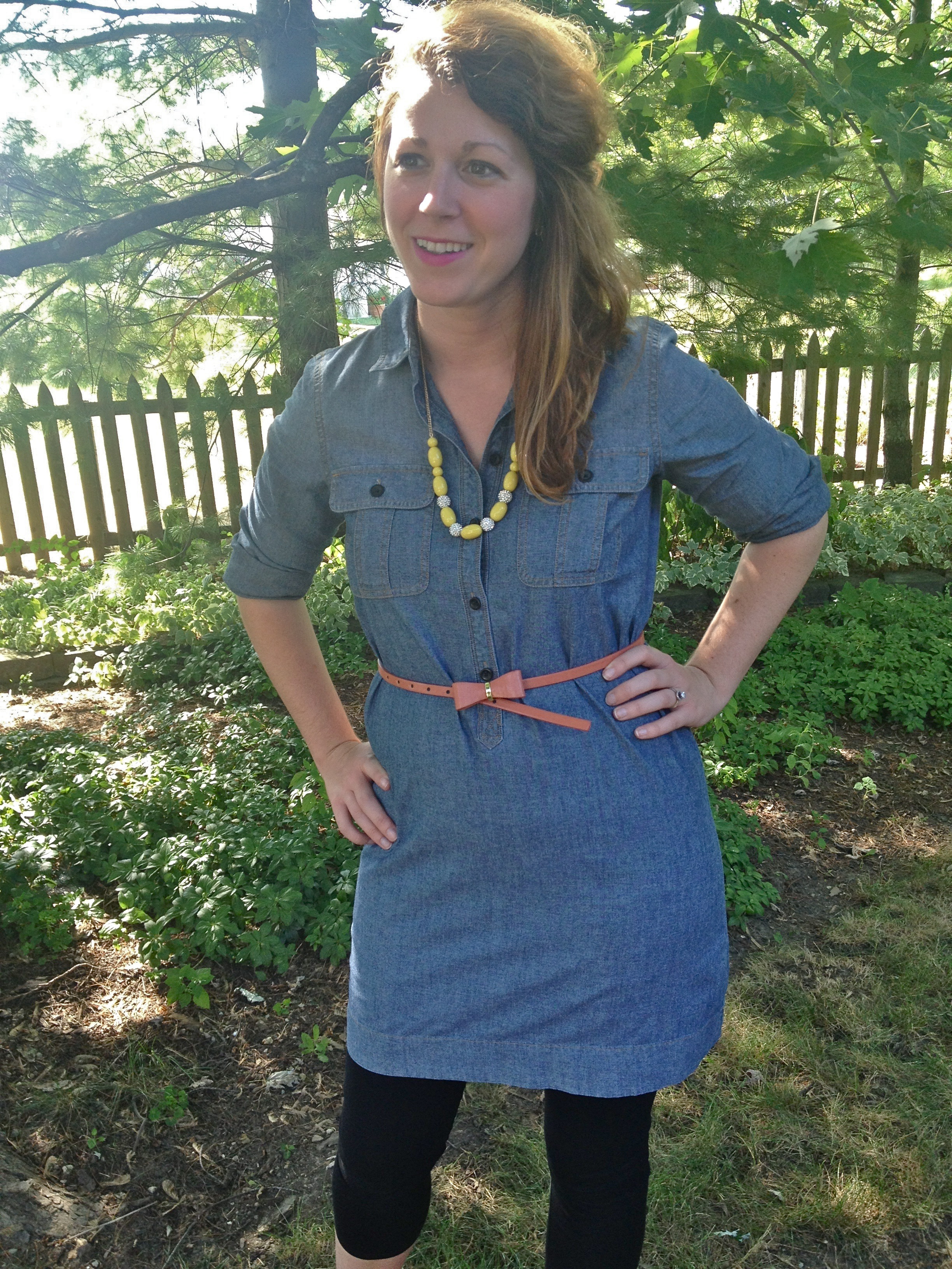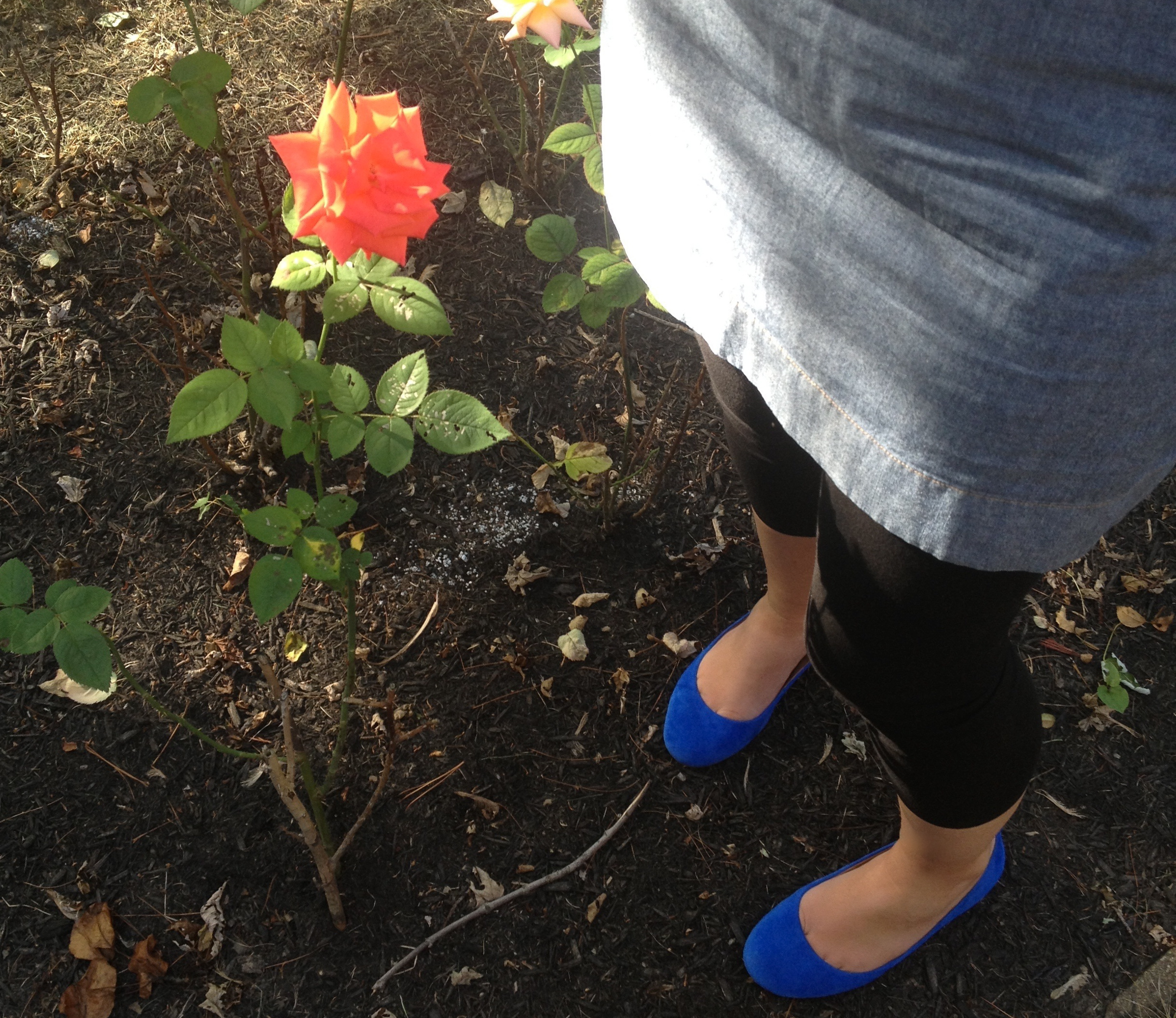 These blue suede shoes, leggings, and chambray dress are in serious rotation this fall. I couldn’t find the blue flats online at JCrew or JCrew Factory anymore, but you may still find them in stores!